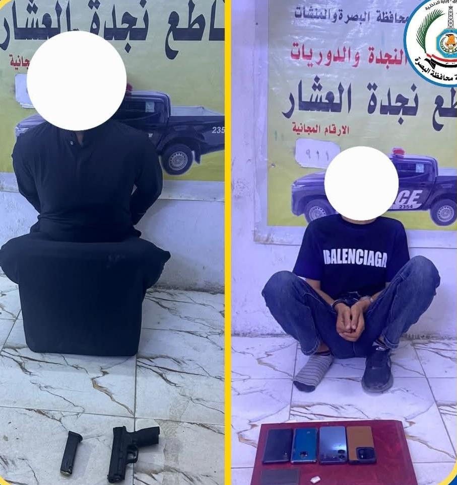 دوريات نجدة العشار تضبط متهمين بحيازة سلاح ومخدرات في البصرة